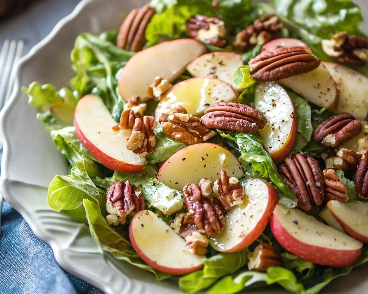 An apple pecan salad typically contains fresh mixed greens, sliced apples, toasted pecans, and crumbled blue cheese. Additionally, most versions include a complementary dressing like apple cider vinaigrette or honey-dijon. The combination creates a perfect balance of sweet, salty, and tangy flavors with varied textures.