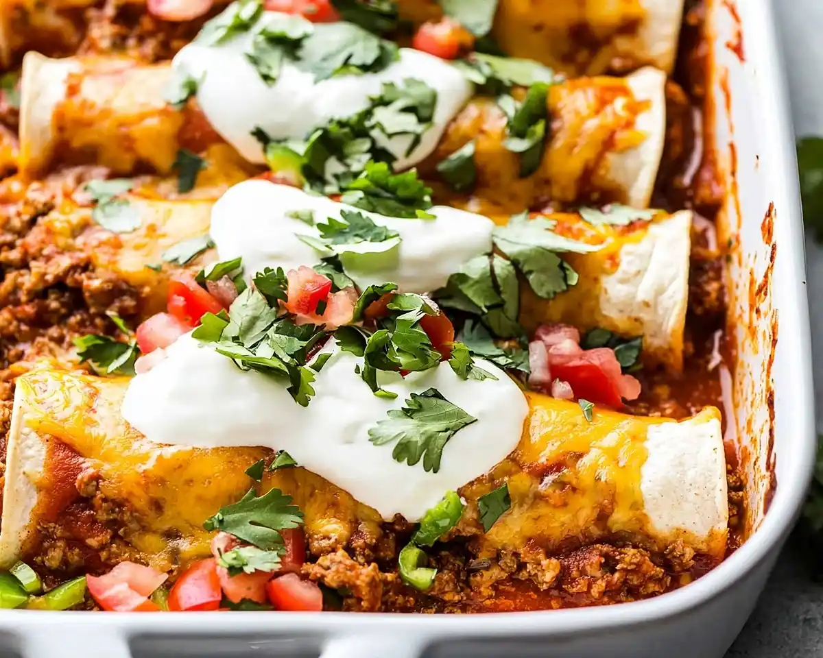 Absolutely—these enchiladas excel as make-ahead meals. Assemble completely, cover tightly, and refrigerate up to 24 hours or freeze up to 3 months. This weeknight dinner with ground beef reheats perfectly, making it ideal for busy schedules.