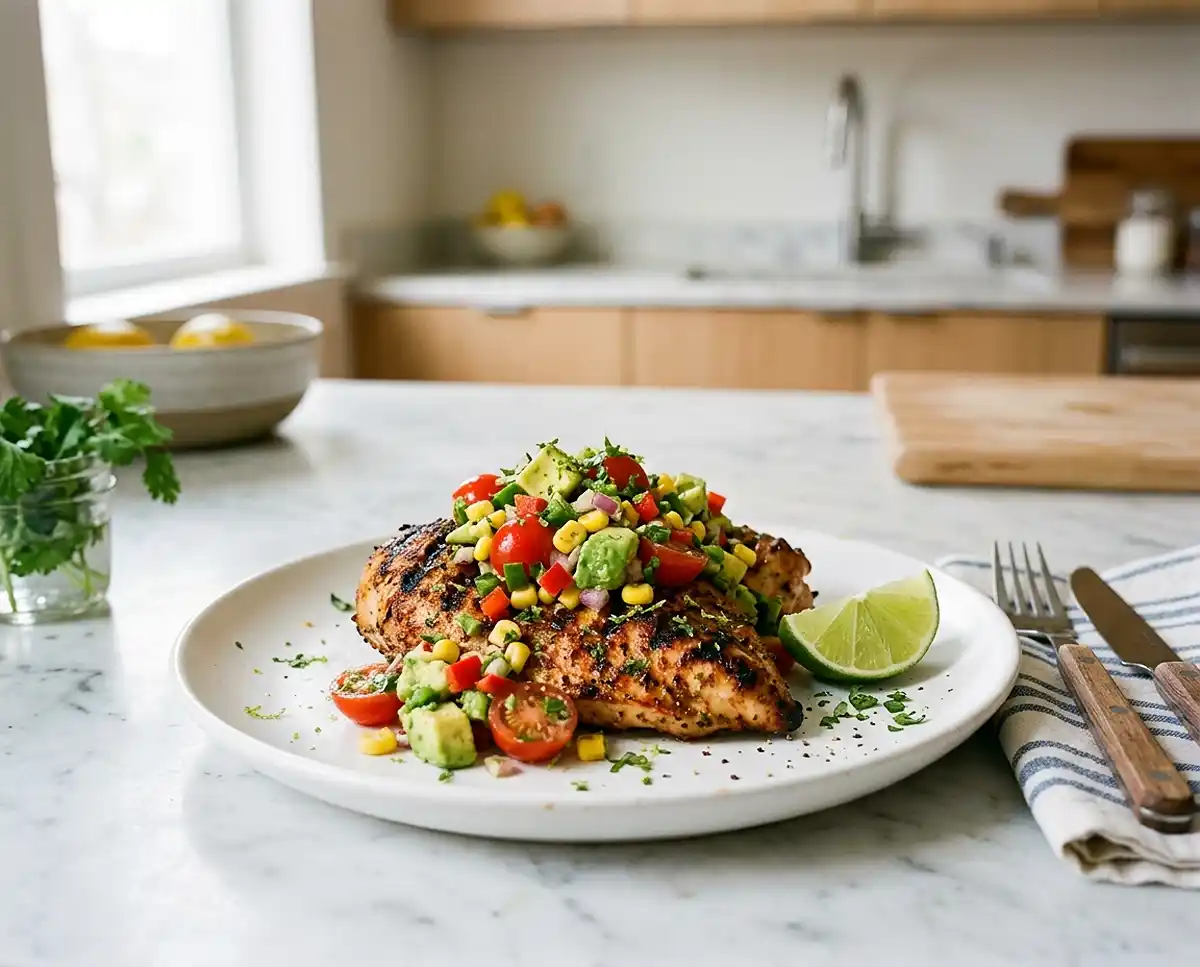 - Right before serving, gently fold the chopped avocados into the chilled salsa. Taste and adjust salt, pepper, and jalapeño seeds to your desired heat level. Spoon generously over the sliced chicken and garnish with a squeeze of fresh lime juice if desired.
