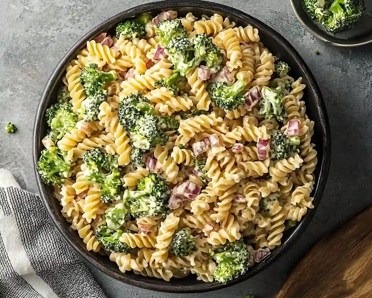 What makes this broccoli salad pasta so dang good is the combo of textures and flavors. You’ve got that creamy, slightly sweet dressing coating every bite of pasta, plus the crunch from fresh broccoli and the salty, smoky punch from crispy bacon. It’s like a flavor party in your mouth, and everyone’s invited.