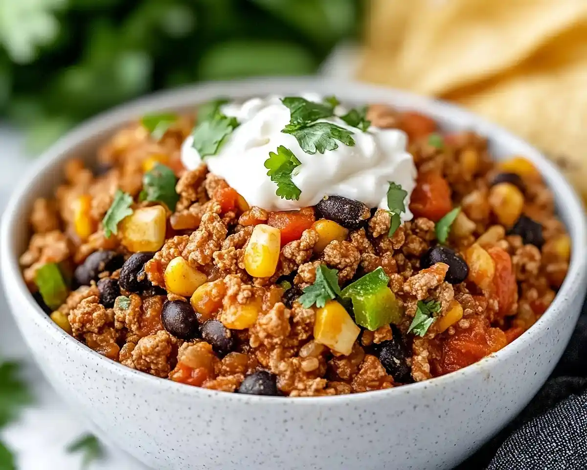 Here’s the thing about this recipe—it’s basically all your favorite taco flavors without the mess of assembly. You get seasoned ground turkey, sweet bell peppers, smoky beans, and juicy corn all mingling together in one skillet. It’s wholesome enough that I don’t feel guilty feeding it to my kids on a Tuesday, but tasty enough that nobody’s complaining about “healthy food” again. Plus, you can customize it however you want—add rice to stretch it further, pile on the cheese, or keep it lighter with cauliflower rice.