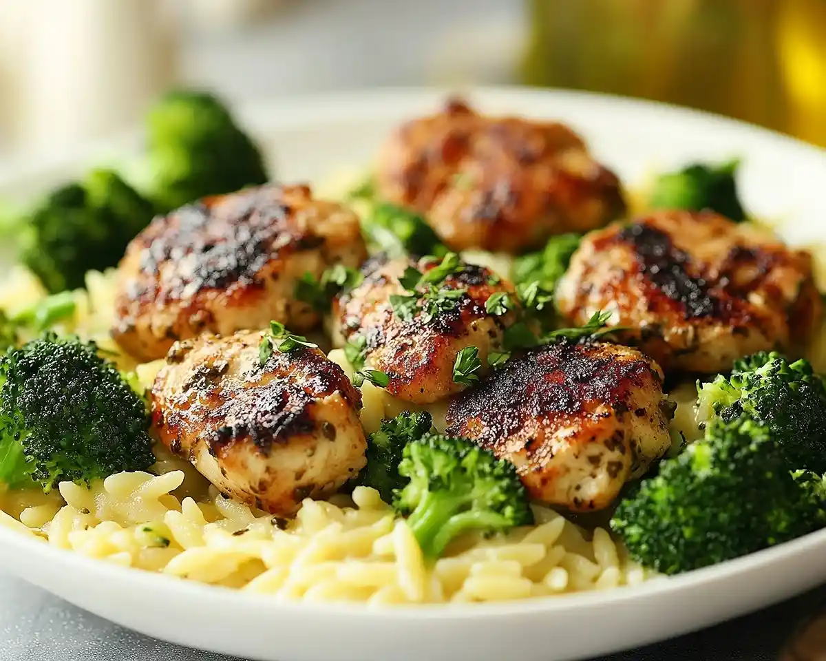 This dish hits that sweet spot between healthy comfort food meals and something fancy enough to serve guests. You’ve got juicy, lemon-zested chicken, orzo that soaks up all those savory pan juices, and crisp-tender broccoli — all finished with a silky butter-Parmesan situation that makes the whole thing taste like something from a nice restaurant.