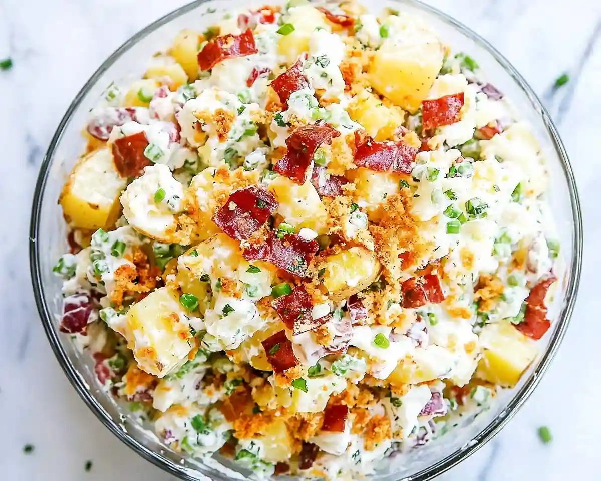 This loaded baked potato salad is the kind of recipe that earns you a reputation. People will ask what’s in it. They’ll go back for thirds. They’ll request it at every gathering going forward.