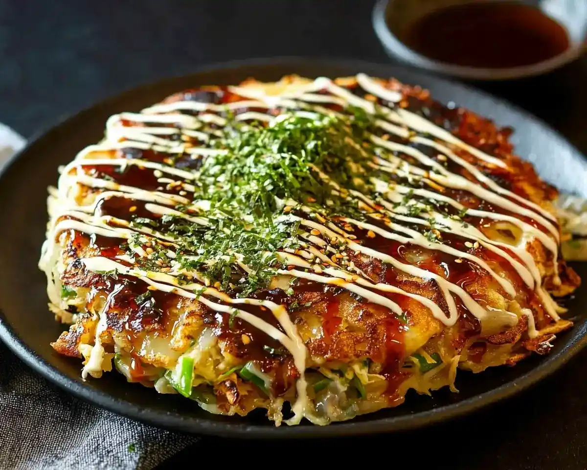 Okonomiyaki recipe with crispy bacon, fresh cabbage, and authentic Japanese flavors. Learn how to make okonomiyaki at home easily. (150 chars)