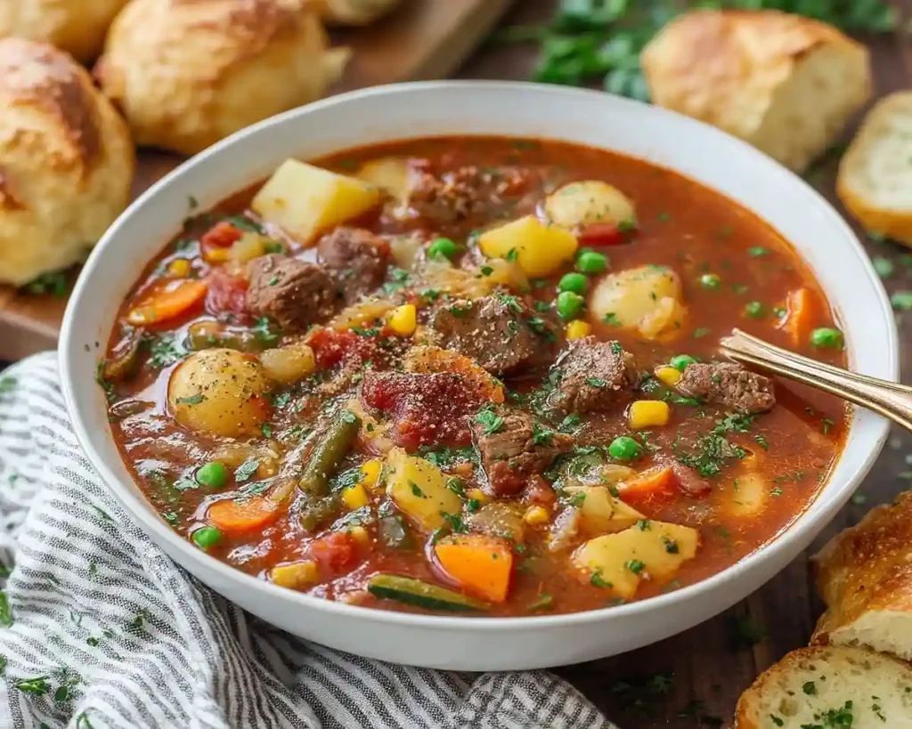Vegetable beef soup recipe with tender beef, fresh vegetables, and rich broth. Perfect crock pot soup recipes for cozy family dinners year-round. Well… let me spill the beans about my …