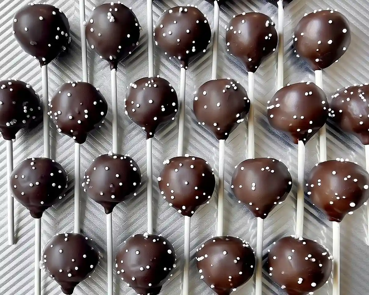 How to make cake pops from chocolate cake? This cake pops step by step process starts with baking and crumbling chocolate cake while hot. Mix the crumbs with chocolate buttercream, roll into balls, chill, insert sticks with melted candy, and dip in dark chocolate coating. The complete guide above walks through every detail for foolproof results.