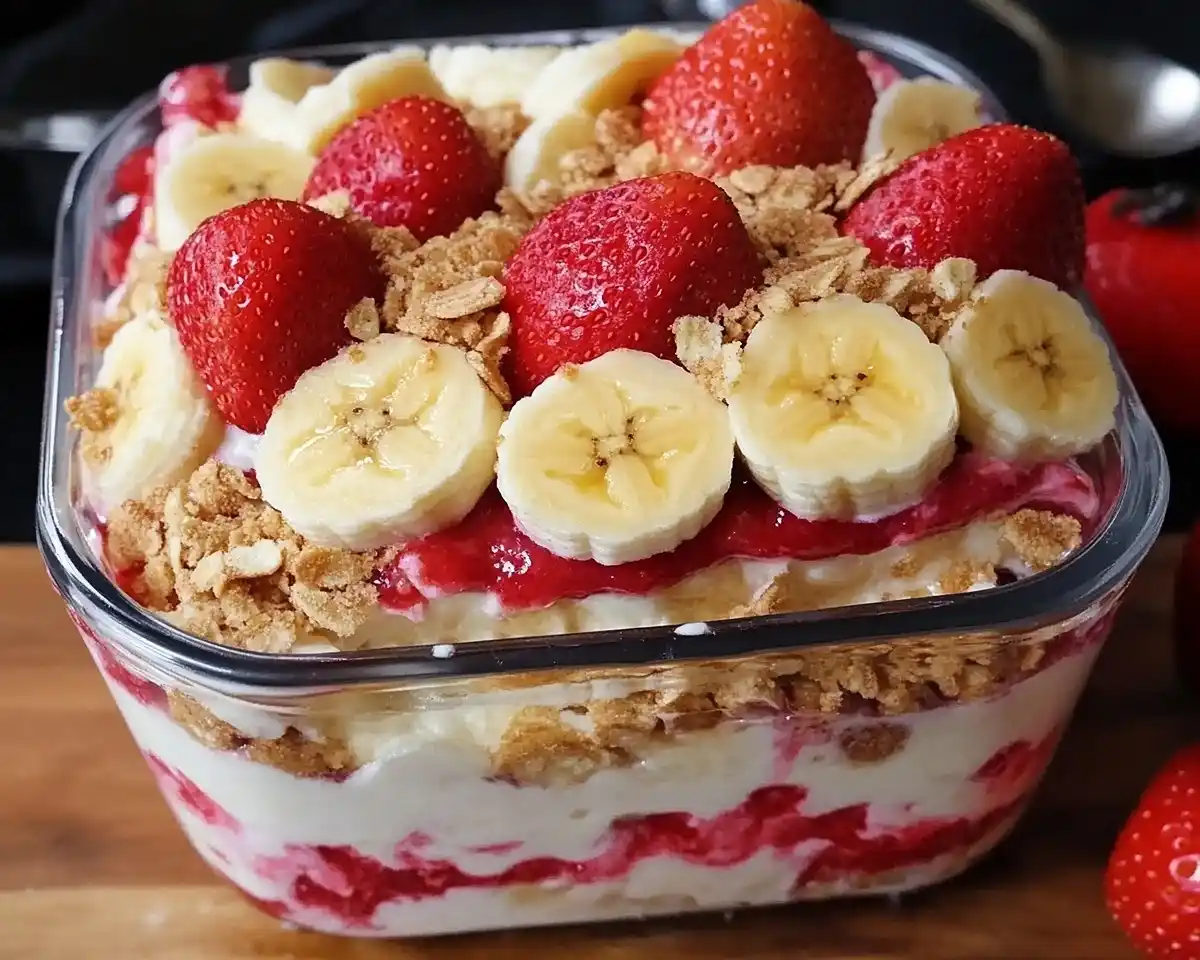 Strawberry Banana Pudding Dream combines fresh fruit, creamy pudding, and vanilla wafers. Quick no-bake dessert ready in minutes—perfect for any occasion.