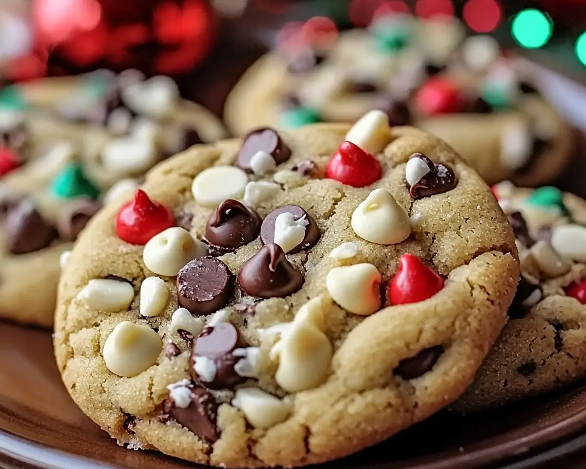 These aren’t your average chocolate chip cookies. Instead, they’re a holiday celebration wrapped in buttery, golden perfection. The secret lies in combining two types of chocolate chips with festive sprinkles.